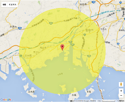 倉敷市玉島柏島を中心に直線距離で16kmが基本的な訪問エリアとなります。